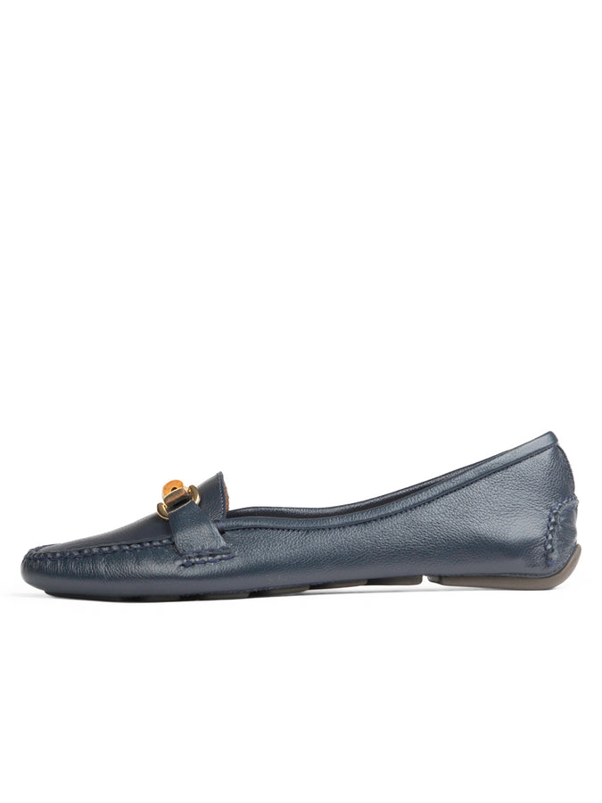 Patricia Green Women’s Jillian Bamboo Horsebit Driver in Navy Leather
