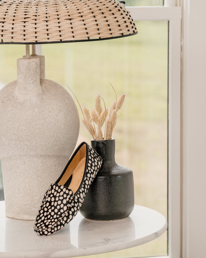 Patricia Green Women’s Jillian Driving Moccasin in Haircalf in Black & White Spotted