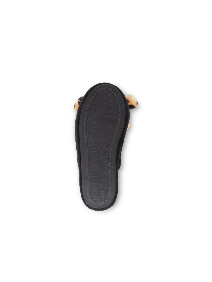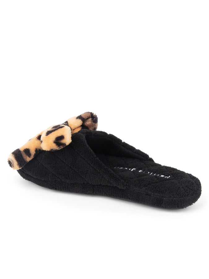 Patricia Green Women’s Bonnie Microterry Slipper in Black w/ Leopard Bow