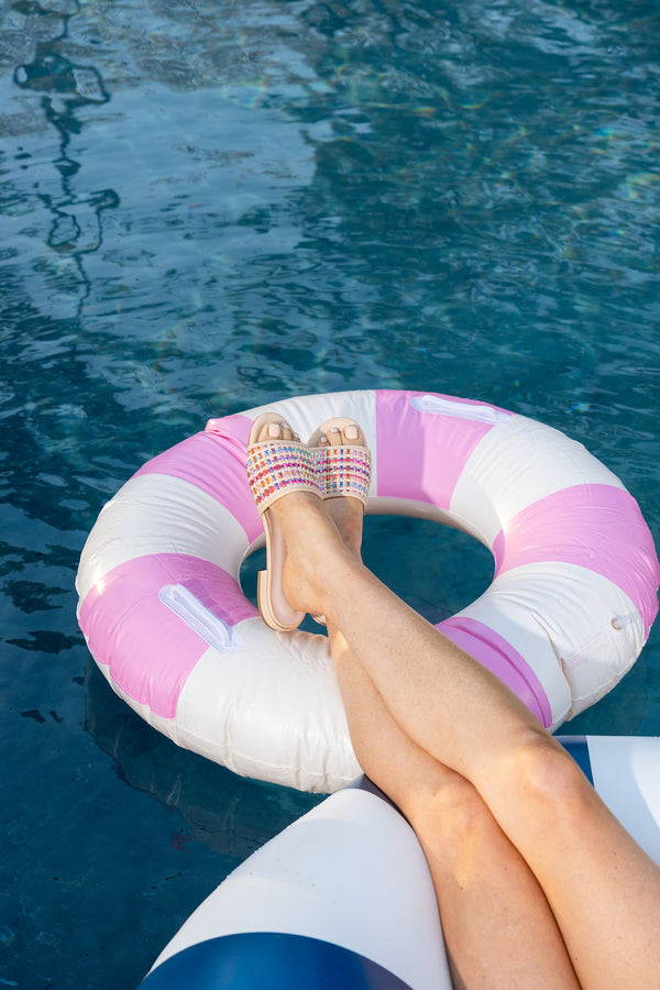 Available in Natural Raffia with Gold Leather trim for a timeless, elevated look, or Rainbow Raffia with Natural Leather for a playful pop of color, Harper brings personality to every step. The cushioned footbed and low, walkable heel make it a go-to for all-day wear—perfect for vacations, brunch dates, and everything in between.
