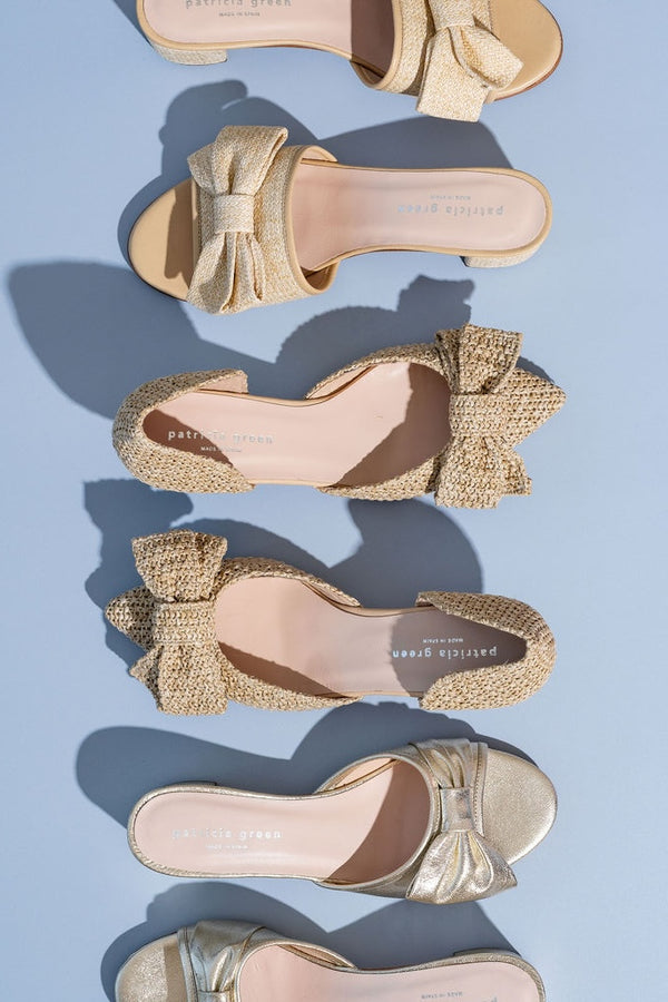 Inspired by sun-drenched days along the Riviera, the St. Tropez Bow Block Heel Sandal brings effortless elegance to warm-weather dressing. Now crafted in soft beige raffia, this refined update pairs natural texture with a chic, feminine silhouette. The oversized bow adds a signature Patricia Green touch—playful, polished, and undeniably timeless.