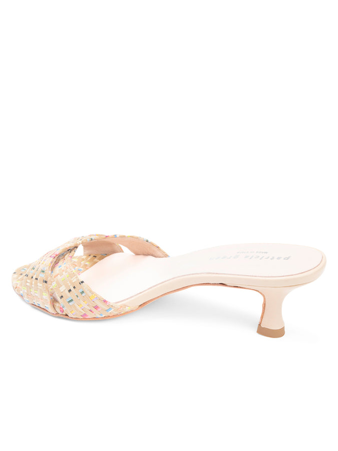 Patricia Green Women’s Lucia Criss Cross Kitten Heel in Rainbow Raffia