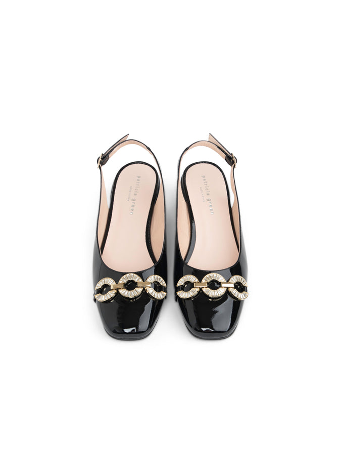 Patricia Green Women’s Aubrey Crystal Slingback in Black Patent