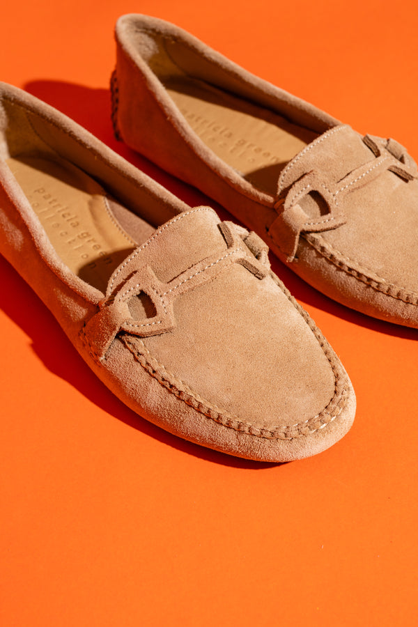 Add a splash of charm to your wardrobe with the Jane Stitched Snaffle Driver from Patricia Green. Handcrafted in Brazil, this elegant driving moccasin combines the luxurious feel of soft suede with a timeless snaffle bit accent. Rich, supple suede creates a flexible and ultra-comfortable hand stitched driving moccasin. A suede tonal horse bit detail with contrast stitching for a luxe finish. Designed with comfort and sophistication in mind, the Jane Driver features a cushioned insole and hand-stitched details for superior quality. Its lightweight, flexible sole provides all-day ease, whether you're out for a stroll or simply relaxing in style. Step into effortless elegance with the Jane Stitched Snaffle Driver, your go-to for chic, comfortable footwear.