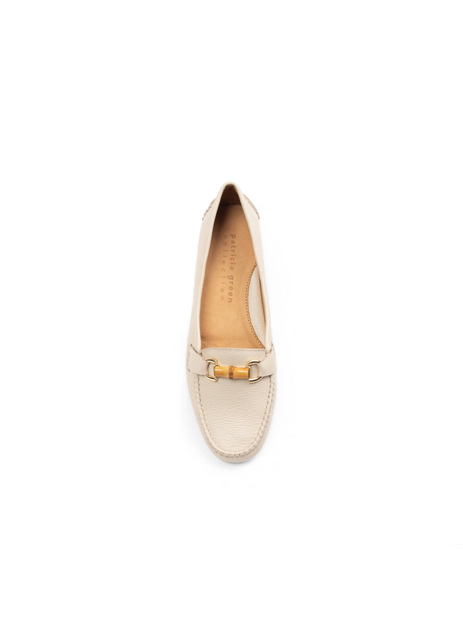 Patricia Green Women’s Jillian Bamboo Horsebit Driver in Cream Leather