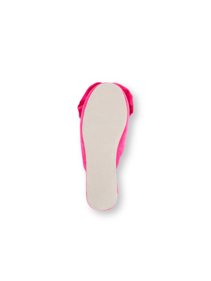 A plush velour slipper is detailed with a large bow at the toe to liven up your look with a touch of playful elegance. Perfect for travel. Scuff sole.