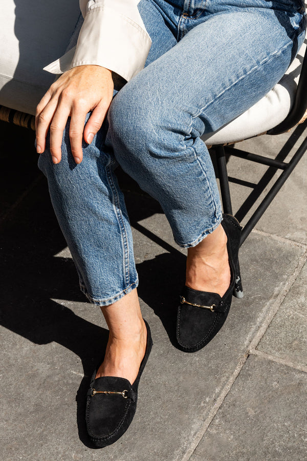 A classic, refined loafer with minimalist horse bit hardware detailing. The Caroline is composed of supple suede and the handcrafted craftsmanship of these loafers makes them like no other. Our wardrobe workhorse.