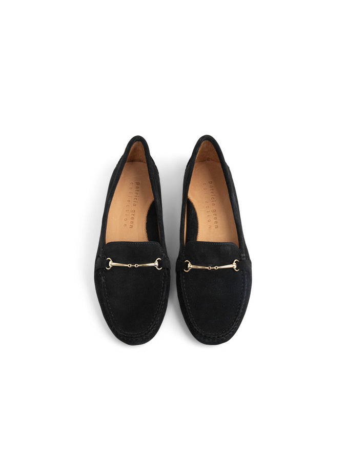 Patricia Green Women’s Caroline Horsebit Driver in Black Suede