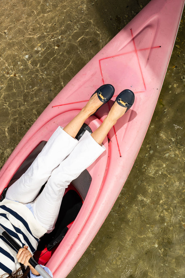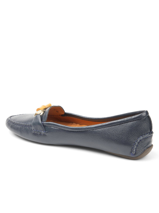 Patricia Green Women’s Jillian Bamboo Horsebit Driver in Navy Leather