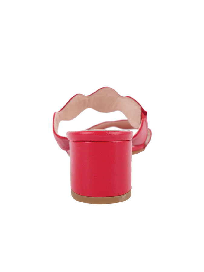 Patricia Green Women’s Palm Beach Block Heel Scalloped Sandal in Red Leather