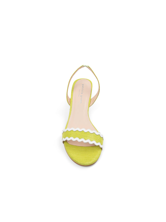 Patricia Green Women’s Panama Slingback Kitten Heel in Lime Raffia/White Leather