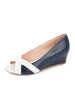 Patricia Green Women’s Como Peep Toe Wedge in Navy/White