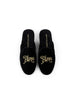 An ultraplush slipper fashioned from rich velvet with tonal grosgrain trim. Embroidered in gold with "Paris" accented by the Eiffel Tower. This slipper is the definition of chic!